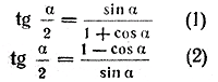 Выражение тангенса половинного угла через синус и косинус целого угла